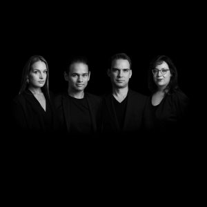 Opus 76 is Keith Stanfield and Zsolt Eder, on violin, Ashley Stanfield on viola and Sascha Groschang on cello. Each gave high level technical and emotive performances. For this sophisticated celebration, they wore evening dress of tuxes and gowns, accessorized with mandatory masks.