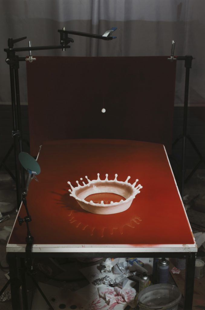 Internationally recognized contemporary figures such as Thomas Demand and Hiroshi Sugimoto use photography to probe the nature of reality and representation, prompting us to reexamine the faith we place in photographs as evidence and history. In the work Daily #25 for example, Demand photographs a paper model featuring constructed artificial cheese slices, which was itself based upon a mundane image he took on his camera phone. Demand here calls into question the significance of such imagery — pictures that grab our attention on social media but soon fade from memory — as historically important records of our current cultural moment. Other artists, including Michael Bishop, Ruth Thorne-Thomsen, Vik Muniz and the Swiss duo of Cortis & Sonderegger, look to iconic works form the history of photography itself as inspiration. Both Muniz and Cortis & Sonderegger recreate Dr. Harold Edgerton’s iconic, high speed image of a milk drop as it splashes into a liquid pool to create a “milk drop coronet.” Where Muniz rendered his version in chocolate syrup, Cortis & Sonderegger recast the image in three dimensions, photographing their studio model in situ and making no effort to hide their trickery. Collectively, these recreations call our attention to the fabricated nature of photographs as well as the trust we place in scientific images, like Edgerton’s, which record phenomenon we are unable to see with the unaided human eye.